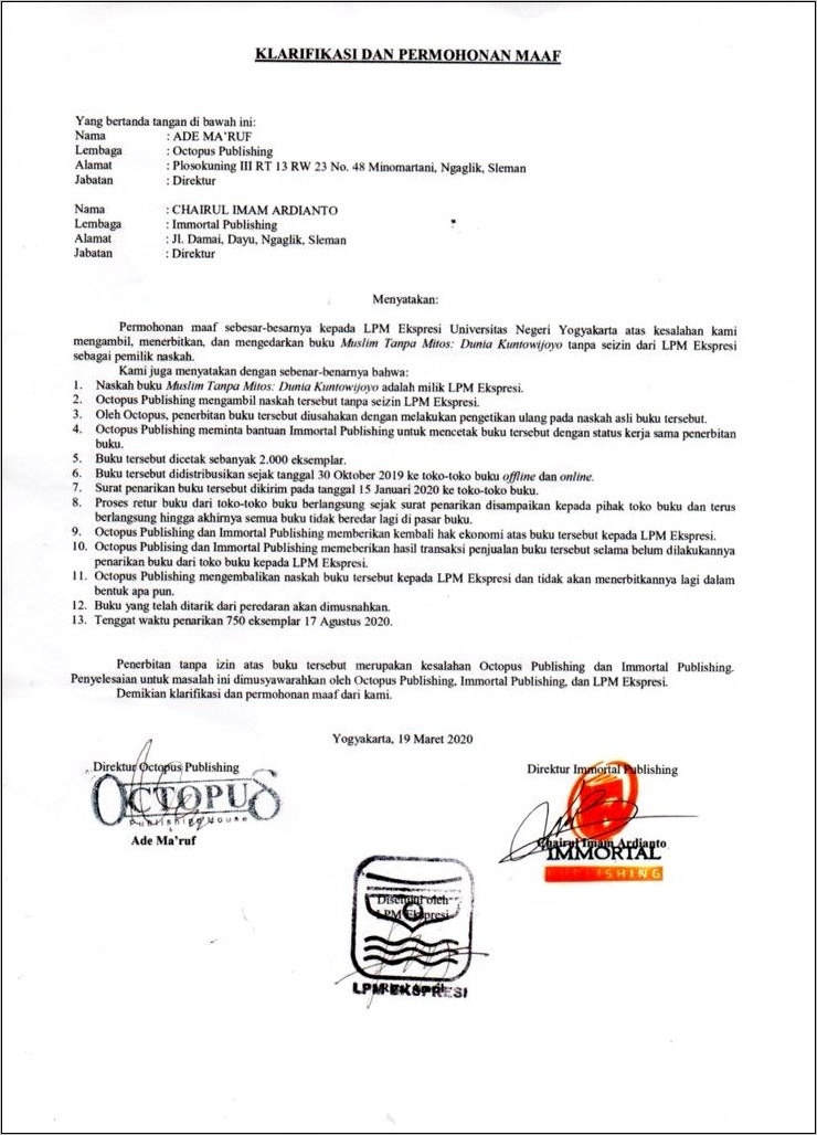 “Hai teman-teman, semoga kalian semua dalam keadaan sehat. Setelah melalui banyak pertimbangan dan pemikiran yang matang, kami memutuskan untuk mengambil jalan masing-masing,” tulis keduanya di awal surat tersebut.