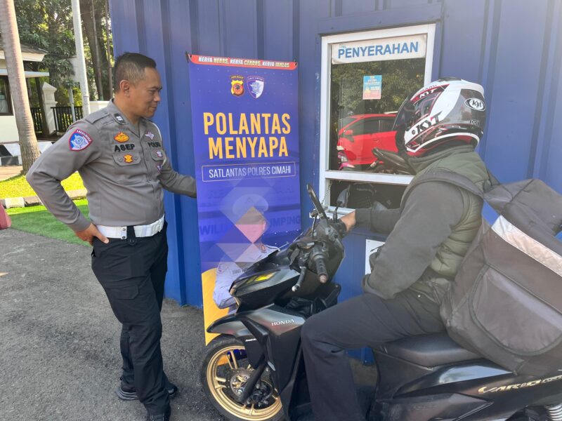 Kota Cimahi, tujuhmenit.com – Satuan Lalu Lintas (Satlantas) Polres Cimahi kembali melaksanakan program “Polantas Menyapa” di Kantor Samsat Cimahi sebagai bentuk komitmen menghadirkan pelayanan publik yang ramah, humanis, dan profesional kepada masyarakat, Selasa (7/4/2026).