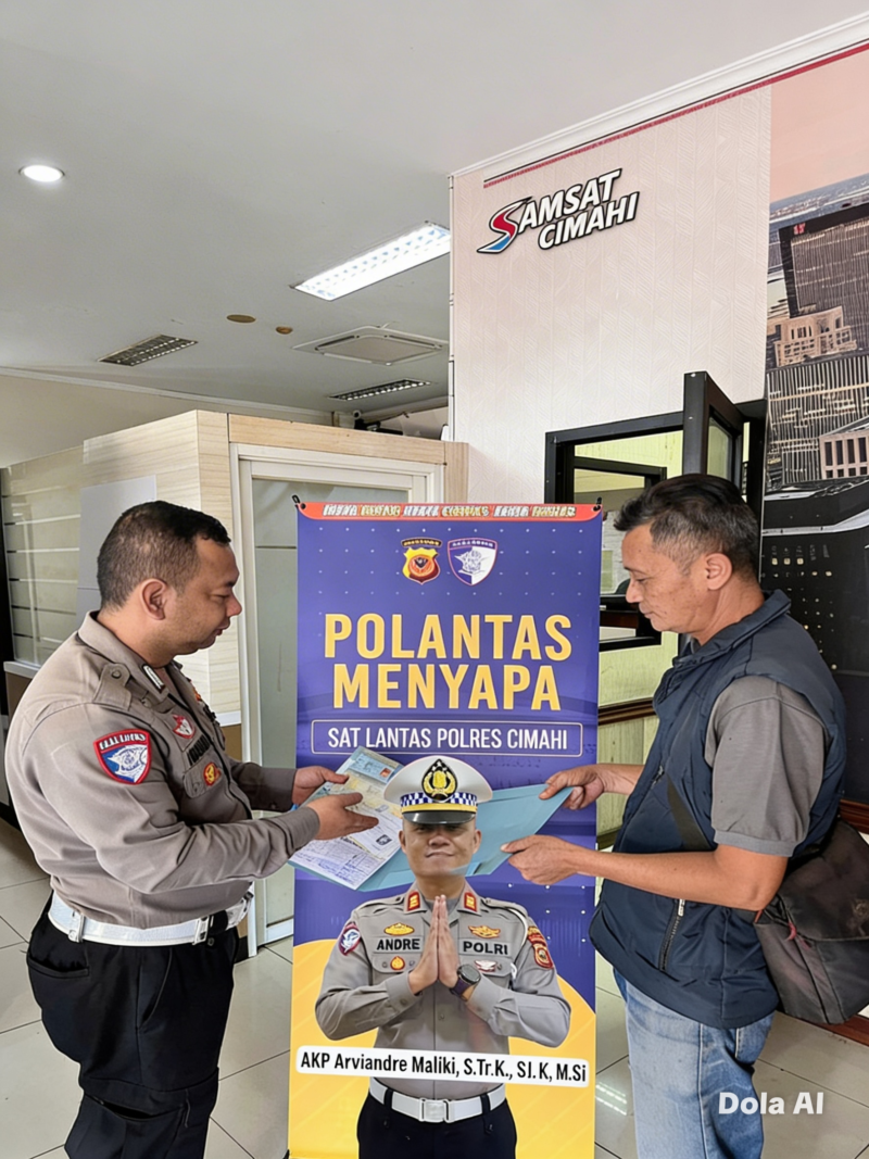 Samsat Cimahi, menggelar kegiatan Polantas menyapa masyarakat dengan ramah dan humanis, membantu para wajib pajak yang hendak mengurus administrasi kendaraan bermotor, mulai dari perpanjangan pajak lima tahunan, ganti pelat nomor, hingga mutasi.