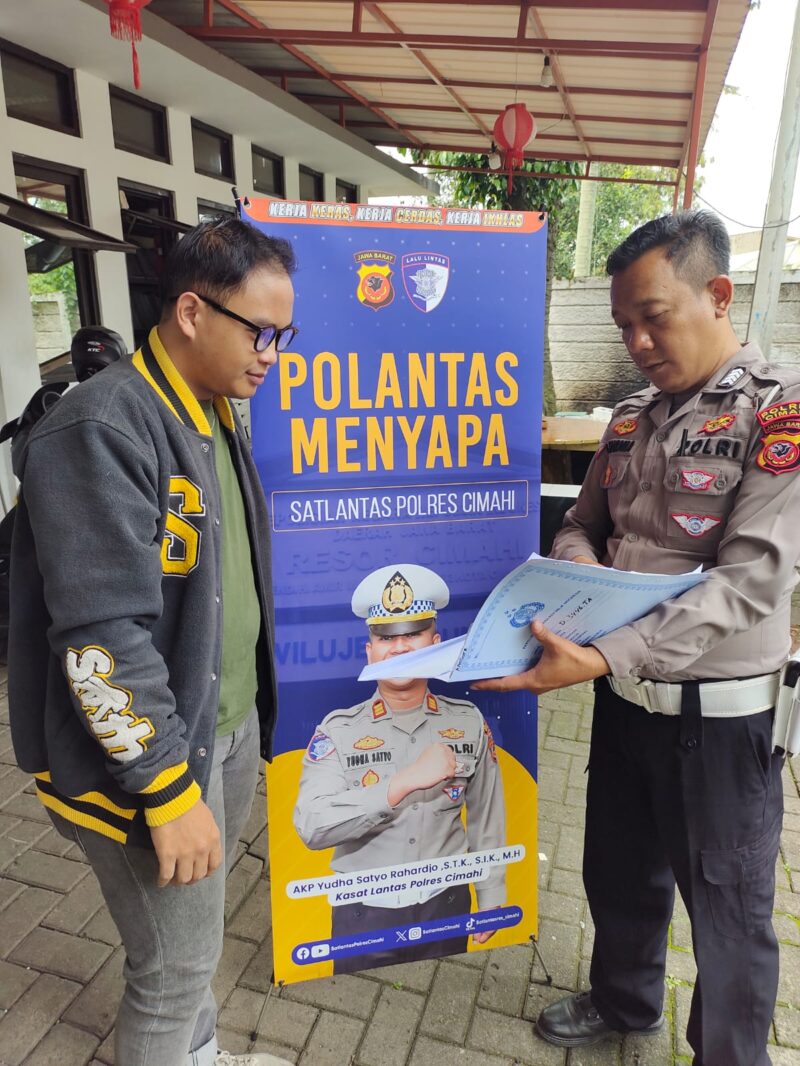 Kota Cimahi, tujuhmenit.com – Samsat Kota Cimahi rutin melakukan giat “Polantas Menyapa” dengan memberikan pelayanan registrasi dan identifikasi ranmor dalam mewujudkan kepuasan dan kepercayaan masyarakat terhadap pelayanan Samsat Cimahi, Senin (17/10/2025) pagi.
