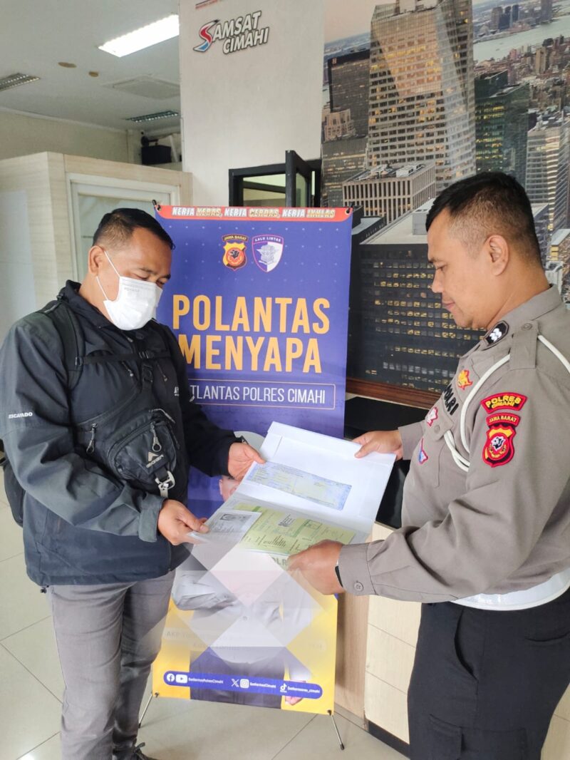 Cimahi, tujuhmenit.com – Polantas Menyapa di Samsat Cimahi hari ini melakukan sosoalisasi terhadap wajib pajak. Selain soal pajak progresif, ada risiko lain yang mengintai jika kendaraan yang sudah dijual tidak segera diblokir datanya. Pemilik lama berpotensi terus menerima surat tilang elektronik (ETLE) jika pelanggaran dilakukan oleh pembeli baru.